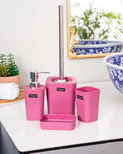 Tumbler : 8 cm x 8 cm x 11 cm (LxWxH) Soap Dish : 12 cm x 9 cm x 3 cm (LxWxH) Toilet Brush Holder : 12 cm x 12 cm x 40 cm (LxWxH) Soap Dispenser : 7.5 cm x 7.5 cm x 17 cm (LxWxH)