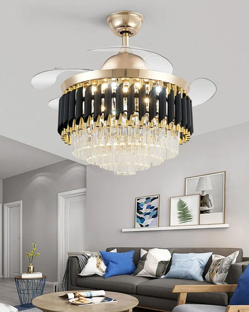 Diamante Retractable Ceiling Fan + Chandelier Light (with Remote Control)