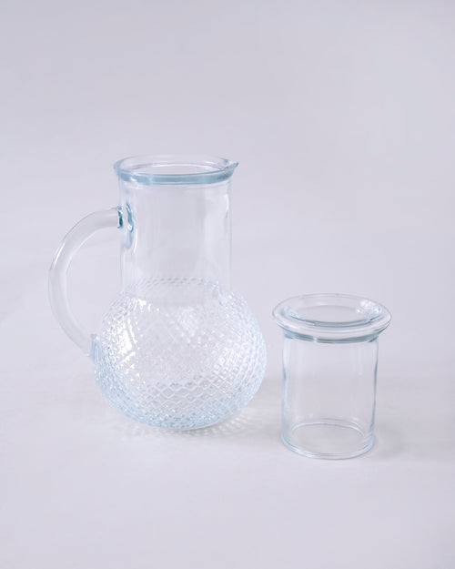Diamond Cut Glass Jug with Tumbler Lid