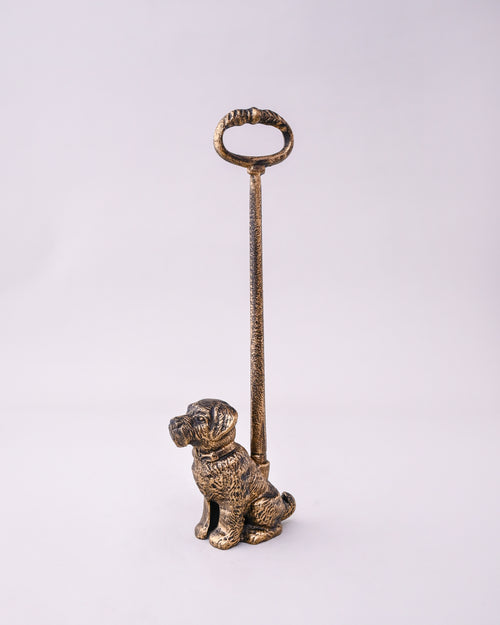 A charming cast iron tissue holder featuring a sitting dog design with a vintage bronze finish. The sturdy build and detailed craftsmanship add a touch of rustic elegance, making it both functional and decorative a perfect accent for classic, country, or eclectic home interiors.
