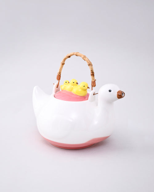 Bring a touch of whimsy to your tea time with this Duck Family Ceramic Kettle, featuring a charming duck-shaped body with adorable yellow ducklings on top and a rustic wooden-style handle. Its playful design and glossy finish make it a delightful piece for both serving and décor. Perfect for adding a cheerful, nature-inspired touch to your kitchen or dining space!