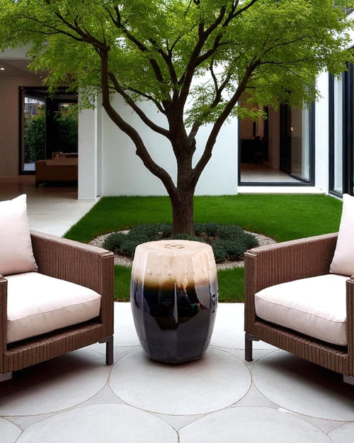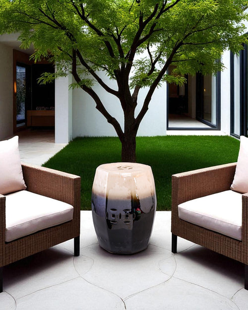 Add a modern and elegant touch to your décor with this Ebony Mist Garden Stool, featuring a stunning gradient design that transitions from soft beige at the top to deep ebony black at the base. The glossy finish, combined with intricate cut-out patterns, gives it a sophisticated and contemporary appeal.
