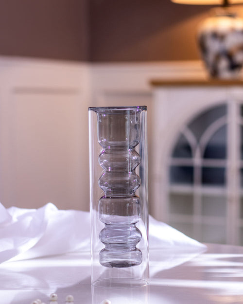 A flower double wall glass vase is a stunning and elegant way to display your favorite blooms. This exquisite vase features a unique double wall design, providing insulation to keep your flowers fresh for longer. With its sleek and modern look, it adds a touch of sophistication to any home or office decor.