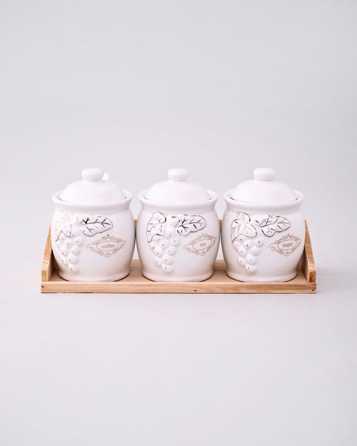 Embossed Grape Ceramic Storage Jar - Set Of 3