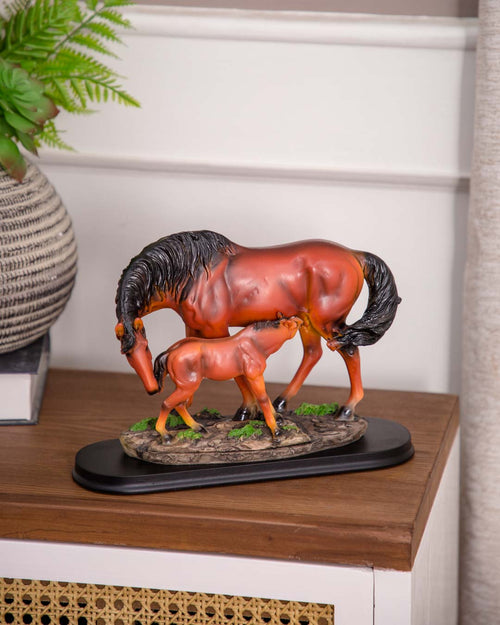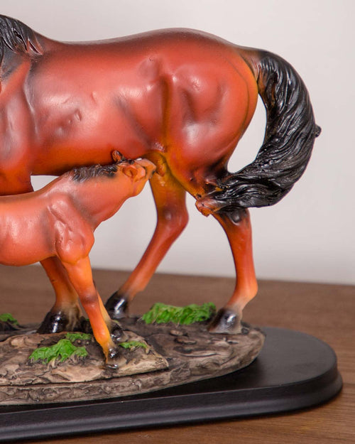 This charming horse feeding baby figurine captures a heartwarming moment of nurturing and tenderness. Crafted with meticulous attention to detail, the figurine portrays a graceful mare gently offering sustenance to her adorable foal, conveying a sense of maternal love and care. With its lifelike design and delicate craftsmanship, this figurine serves as a touching addition to any dƩcor, symbolizing the enduring bond between mother and child.