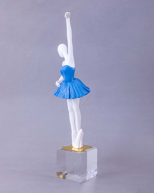 The F igurine Depicts the Delicate Beauty of the art Form. The Figurine sits atop a Glass cube Base and Forms a Decorative accent that will add a whimsical Flair to any Bookcase, Tabletop or Desk.