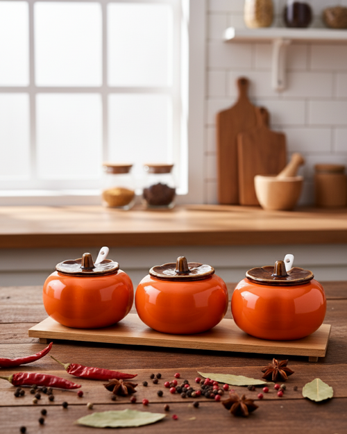 This Farmhouse Pumpkin Condiment Server With Spoon is a charming addition to any kitchen. Made with high-quality ceramic, it features design and comes with a matching spoon. Perfect for storing and serving your favourite condiments or spices with a touch of country charm.