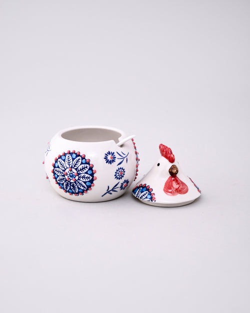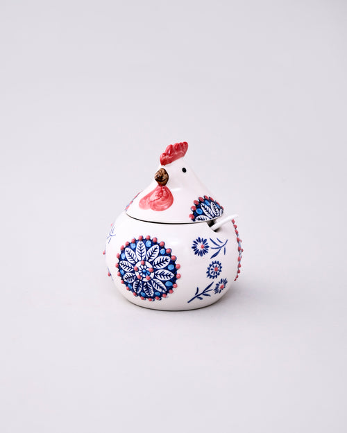 This Farmhouse Rooster Ceramic Jar With Spoon is a charming addition to any kitchen. Made with high-quality ceramic, it features a rooster design and comes with a matching spoon. Perfect for storing and serving your favourite condiments or spices with a touch of country charm.