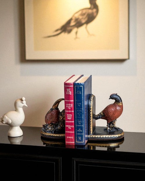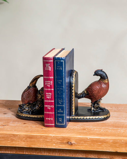 This elegant bookend set features beautifully detailed feathered pheasants, adding a touch of natural charm to any bookshelf or desk. Crafted from durable materials, these bookends will keep your books upright and organized while also adding a touch of sophistication to your home décor.