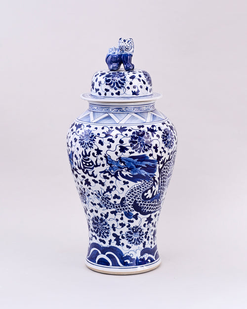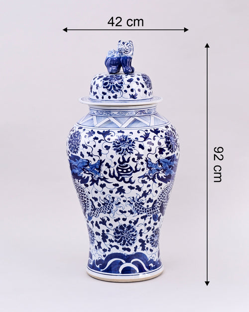 Flared Dragon Foo Dog Temple Jar