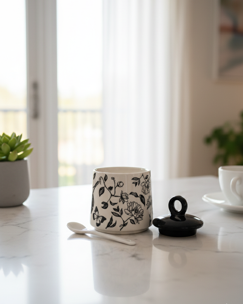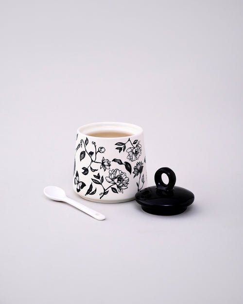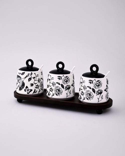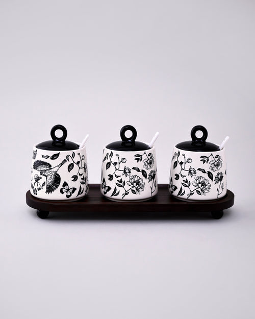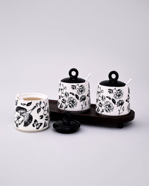 Floral Ceramic Condiment Jar Set - Black