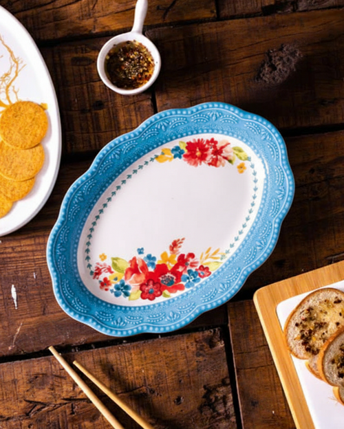 Elevate your table setting with this stunning floral serving platter that brings vibrant botanical charm to every meal. Perfect for entertaining guests or everyday dining, its elegant design adds a touch of nature-inspired sophistication to your home. Durable and versatile, it's an essential piece for any decor enthusiast.
