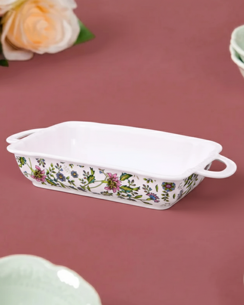 Floral Motif Rectangular Baking Dish - Set Of 2