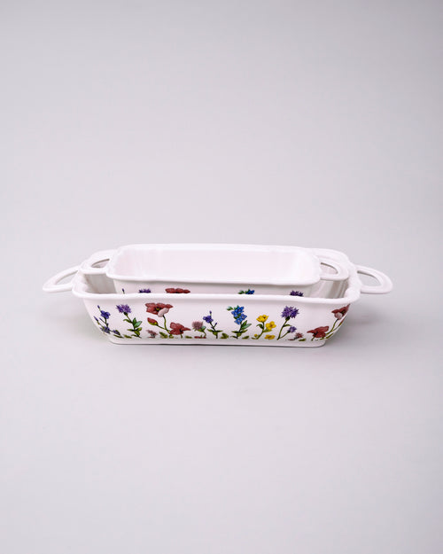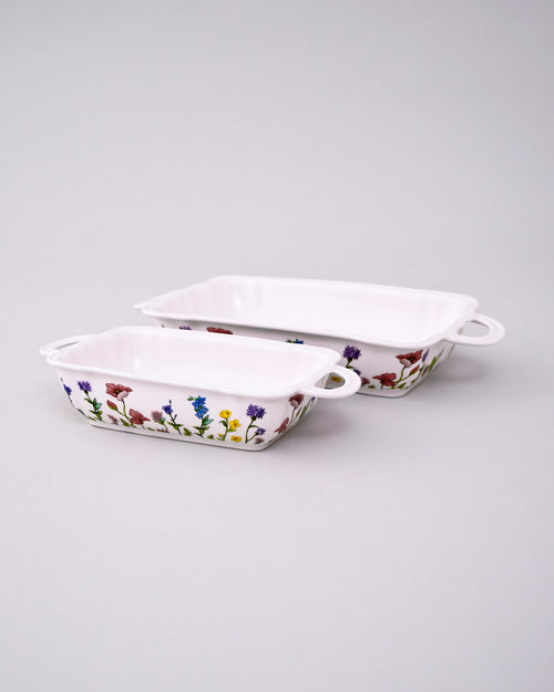 Floral Motif Rectangular Baking Dish - Set Of 2