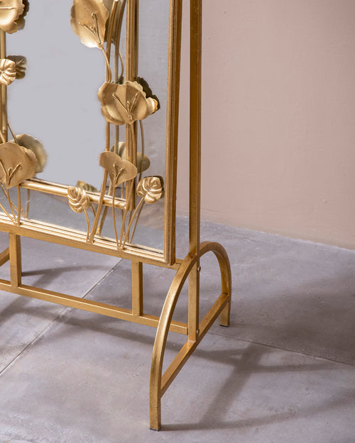 The Gilded Garden Standing Mirror is a beautiful, functional addition to any home. With its ornate design and sturdy construction, this mirror not only adds a touch of elegance to any room but also provides a full-length reflection for your daily grooming needs. Bring a touch of luxury to your space with this stunning standing mirror.