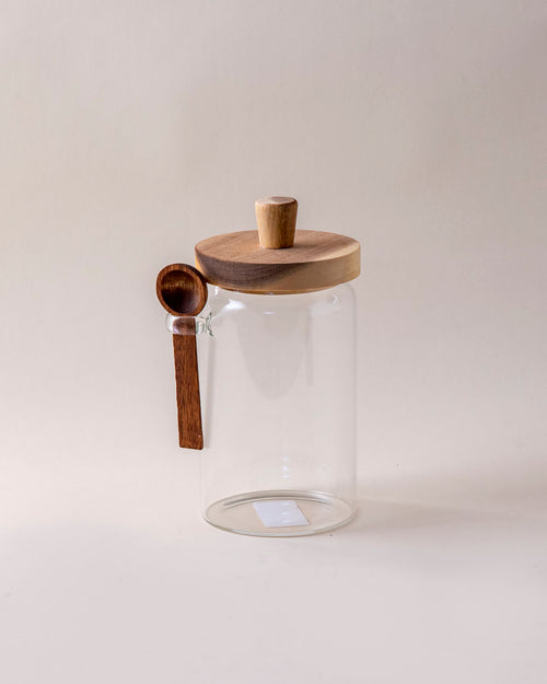 Glass Storage Jar with Wooden Lid and Spoon - Large