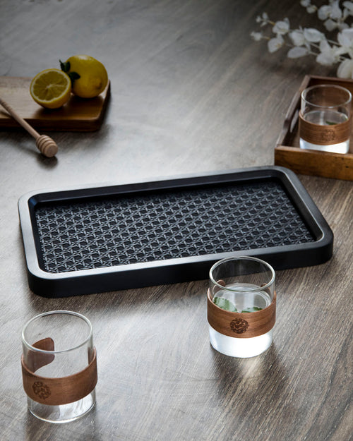Elevate your tea time experience with this elegant glass tea set, featuring a transparent glass teapot with a wooden lid and handle, along with matching glass adorned with wooden accent. The set is beautifully arranged on a rustic wooden tray, adding warmth and charm to your serving presentation. Ideal for both casual and formal gatherings, this tea set effortlessly combines modern design with natural elegance. Perfect for tea lovers and as a thoughtful gift.