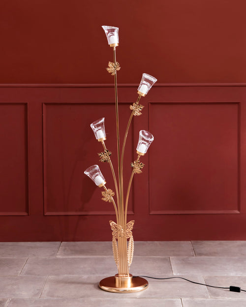 Designed with intricate details, the Glowing Petals Floor Lamp adds a touch of elegance to any room. Its unique design features glowing petals that radiate a warm and inviting light. With its adjustable settings, the lamp provides the perfect ambiance for any occasion. Illuminate your space with this beautiful and functional piece.