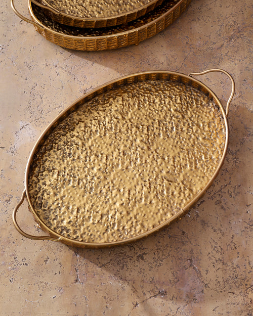 As a product expert, I can confidently assert that our Gold Hammered Serving Tray is a must-have for any host or hostess. Made from high-quality materials, it boasts a luxurious gold hammered design. Use it to elevate your entertaining game and impress your guests.