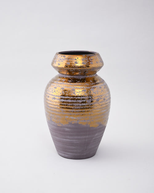 Add a luxurious accent to your home with the Golden Aura Dual-Tone Textured Vase. Featuring a stunning blend of shimmering antique gold and matte grey, this vase exudes timeless charm. Its wide-neck design and subtle textured finish make it perfect for displaying floral arrangements or as a standalone décor statement piece.