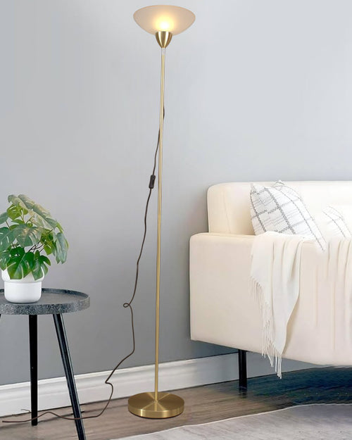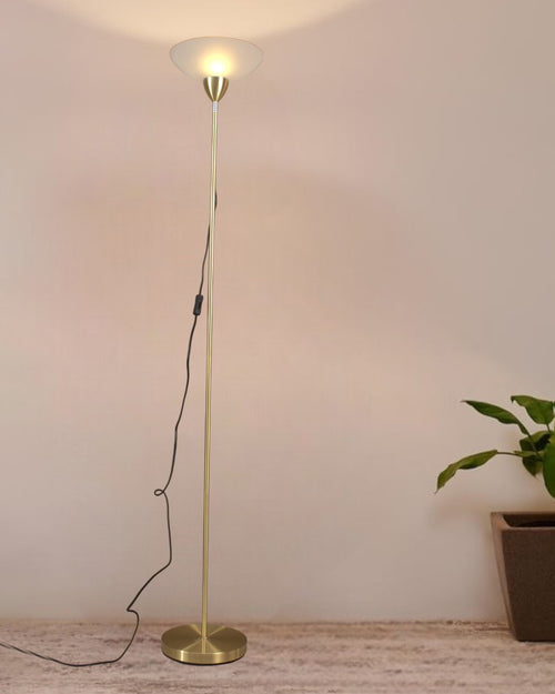 This Golden Glow Torchbearer Floor Lamp Provides elegant and efficient lighting For any Room. The Golden effect creates a warm and inviting atmosphere, while the torchbearer design maximises light output. With a Professional Tone and Factual information, this lamp is Perfect For any Home or office setting.