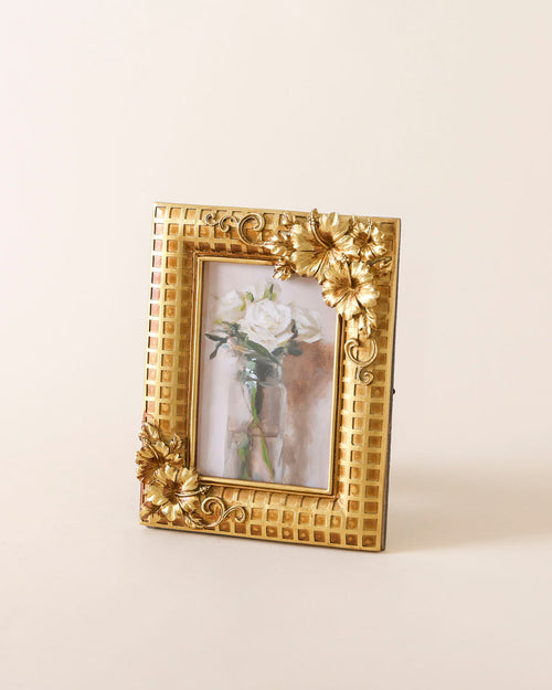 Capture your special moments in style with our golden lily ornate photo frame Its elegant and timeless design adds a touch of vintage charm to any room. Display your favorite memories and add a touch of warmth to your home decor.