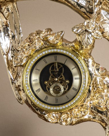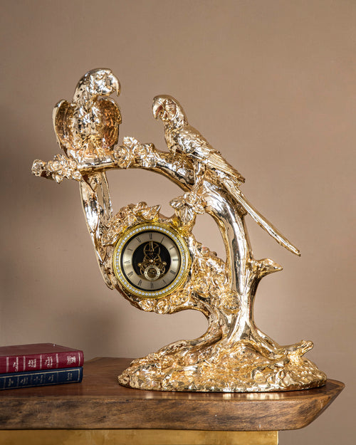 Expertly crafted with intricate details, the Golden Parrot Branch Table Clock is a stunning addition to any space. Boasting a unique design of a golden parrot perched atop a branch, this clock not only tells time but also adds a touch of elegance and luxury to your decor.