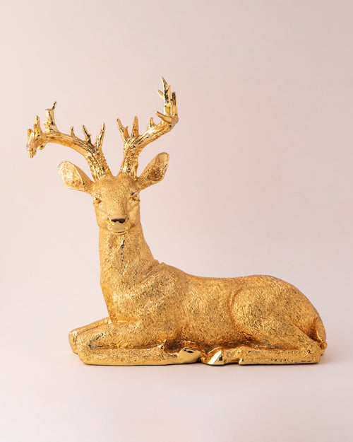 Bring a touch of elegance and majesty to your space with this exquisite Golden Regal Deer Figurine. Crafted with intricate detailing and finished in a luxurious golden shimmer, this piece captures the serene beauty of a resting deer.