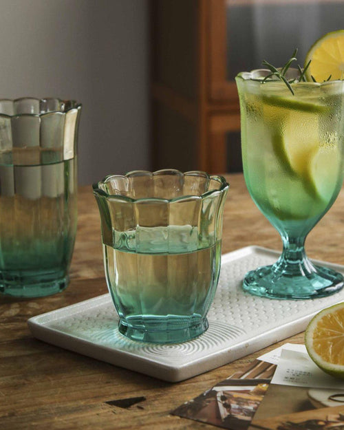 Our Tulip inspired drinkware features an ombre palette that starts at the base and transitions as it nears the rim. Chic, elegant, effortless - a perfect companion for your beverage.