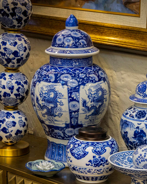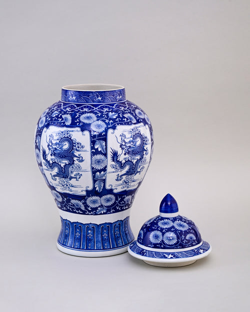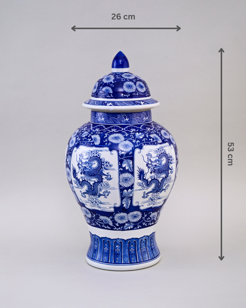 Guardian Dragon Blue & White Temple Jar - 53 cm