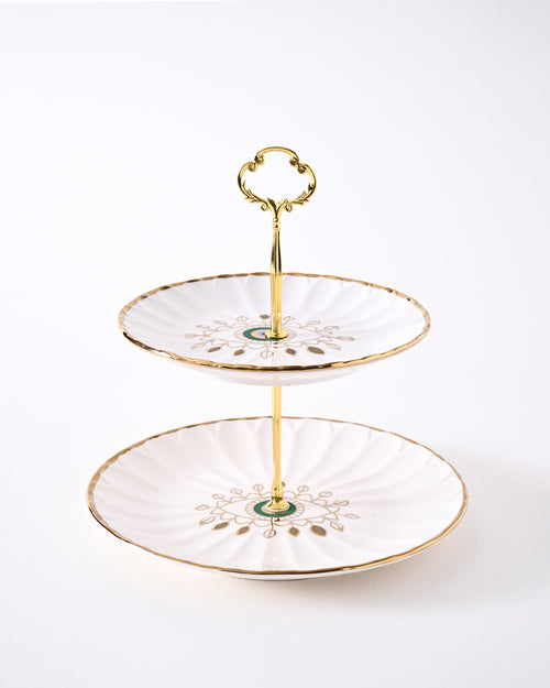 Use these dainty cake stands to serve your favourite desserts and hors-d'oeuvres. Our 2-tier cake stand adds a touch of elegance to any occasion, from an elegant dinner to a casual gathering. Perfect for desserts, pastries, and finger foods. This classic accessory gives your tabletop the ideal presentation at your next party.
