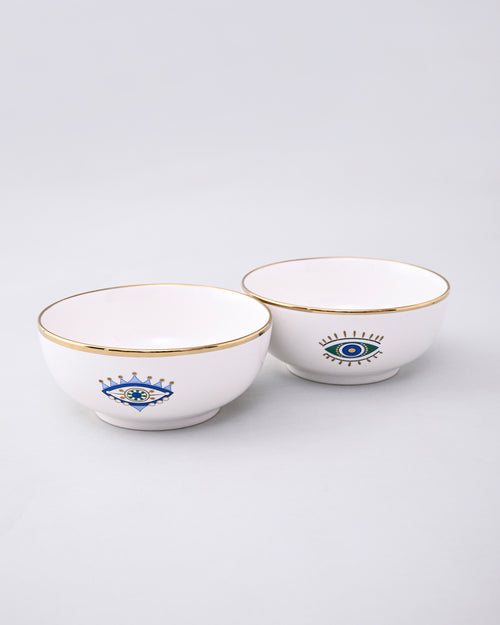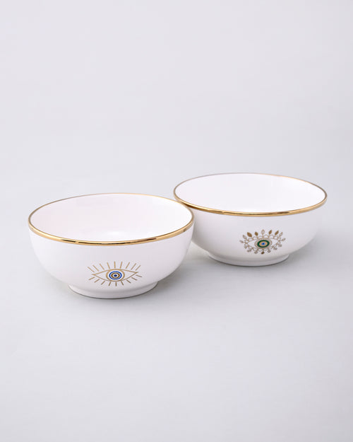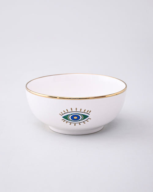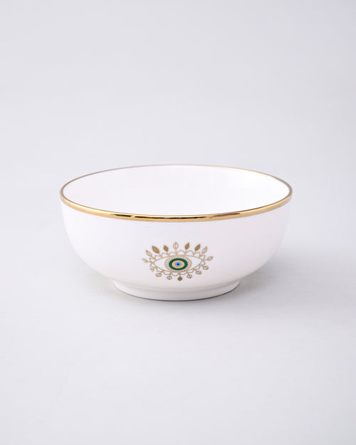 Serve with style and positivity using our Guardian Evil Eye Serving Bowl. Embellished with the iconic evil eye motif and elegant golden detailing, this bowl brings both charm and protection to your dining table. Made from premium-quality ceramic with a smooth, glossy finish, it’s perfect for serving salads, curries, fruits, or snacks.
