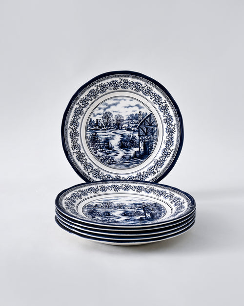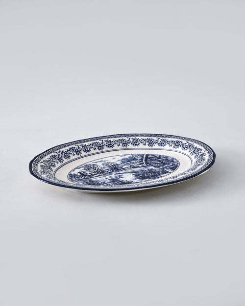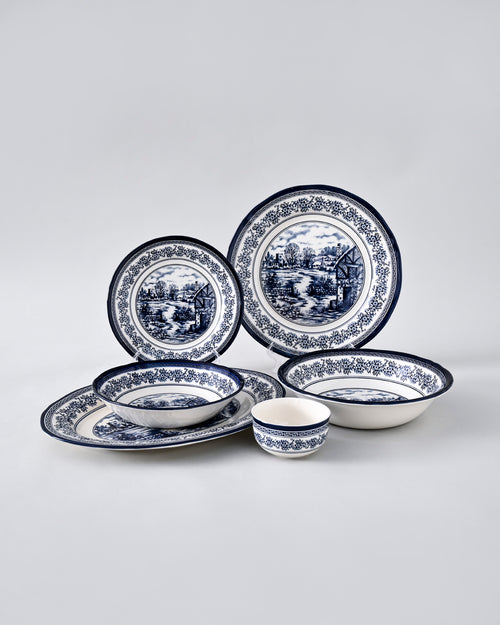 The Halcyon Blue Ceramic Dinner Set is a timeless blend of elegance and tradition, crafted to bring sophistication to your dining experience. Featuring classic blue and white artistry, the set is adorned with intricate floral borders and serene countryside scenery, reminiscent of vintage European porcelain.