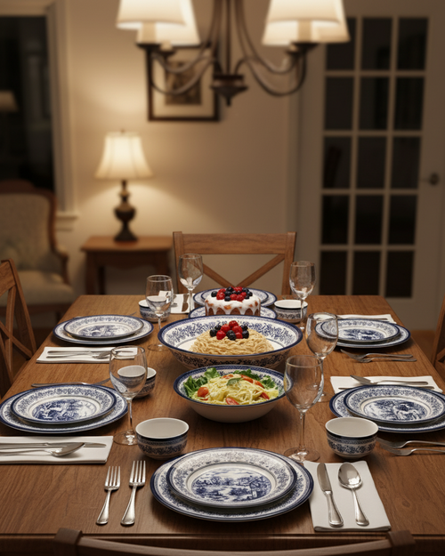 Each piece is finely detailed, offering a perfect balance of charm and functionality. Durable yet graceful, this dinner set is ideal for family gatherings, festive occasions, or adding a touch of heritage style to everyday dining. A true celebration of artistry and refinement, it transforms every meal into a classic experience.