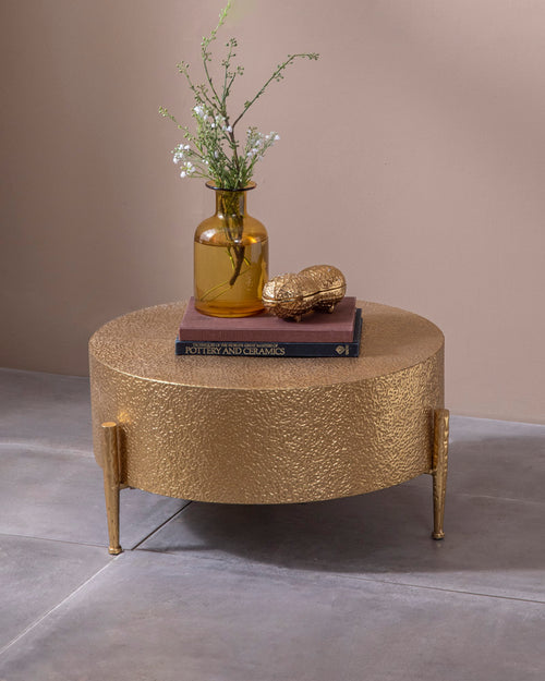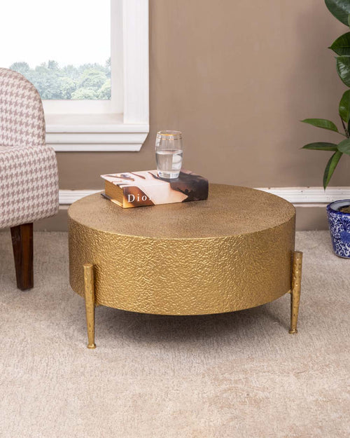 The hammered gold round shape coffee table exudes elegance and sophistication with its exquisite hammered texture and radiant gold finish, adding a touch of luxury to any living space. Its round shape offers a balanced and harmonious look, making it a perfect centerpiece for both modern and traditional interiors. This coffee table combines style and functionality, ensuring it stands the test of time.