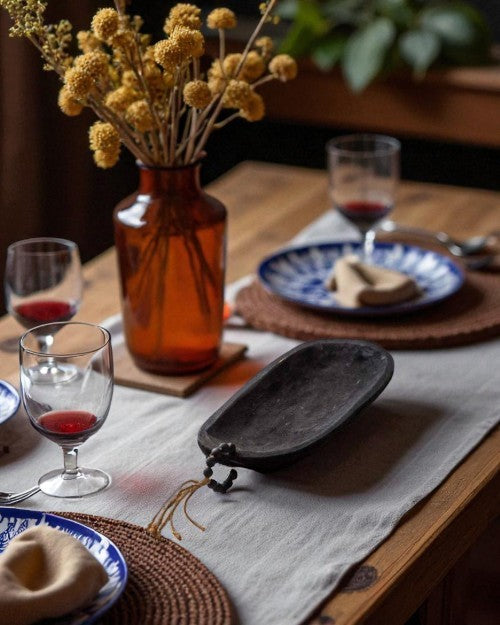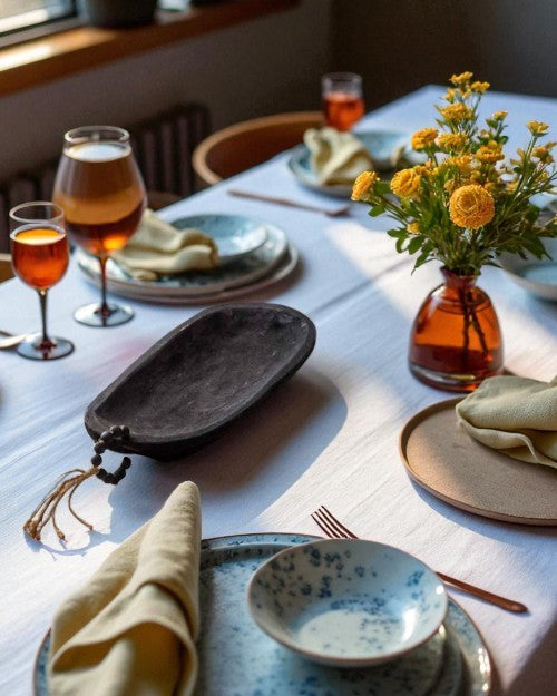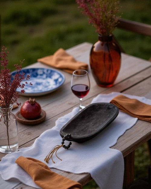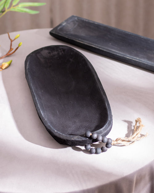 Elevate your kitchen and table decor with our meticulously handcrafted Hanlin Wooden Tray. Its sophisticated black color complements any setting, while its lightweight design makes it easy to carry and serve with ease.