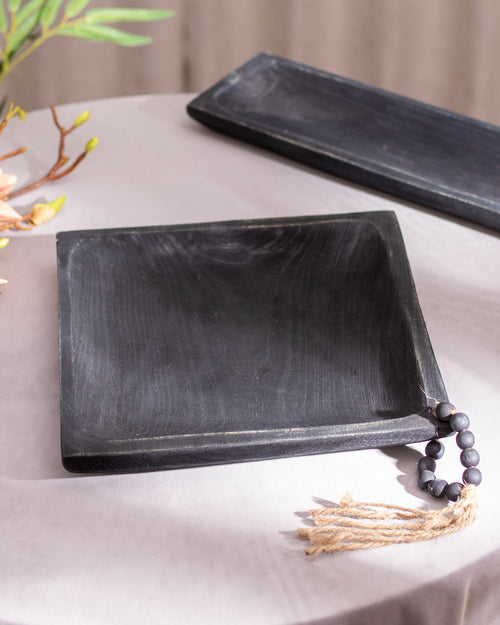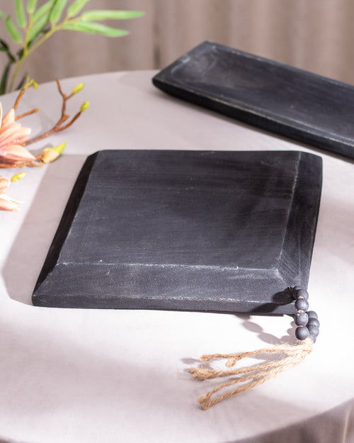 Elevate your kitchen and table decor with our meticulously handcrafted Hanlin Wooden Tray. Its sophisticated black color complements any setting, while its lightweight design makes it easy to carry and serve with ease.