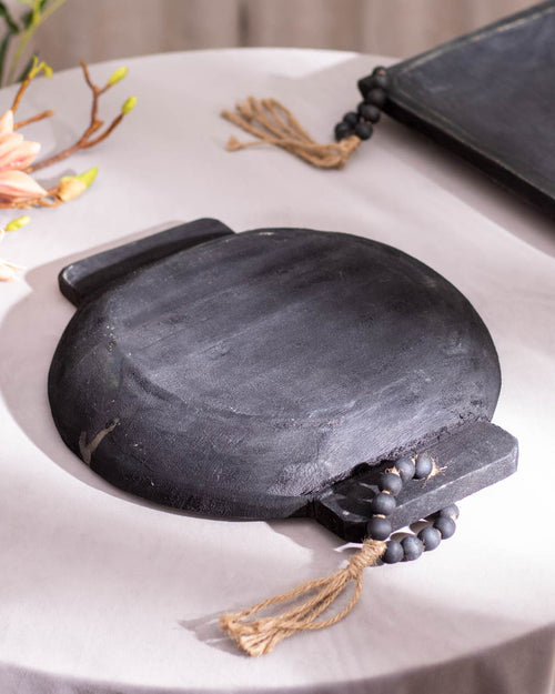 Elevate your kitchen and table decor with our meticulously handcrafted Hanlin Wooden Tray. Its sophisticated black color complements any setting, while its lightweight design makes it easy to carry and serve with ease.