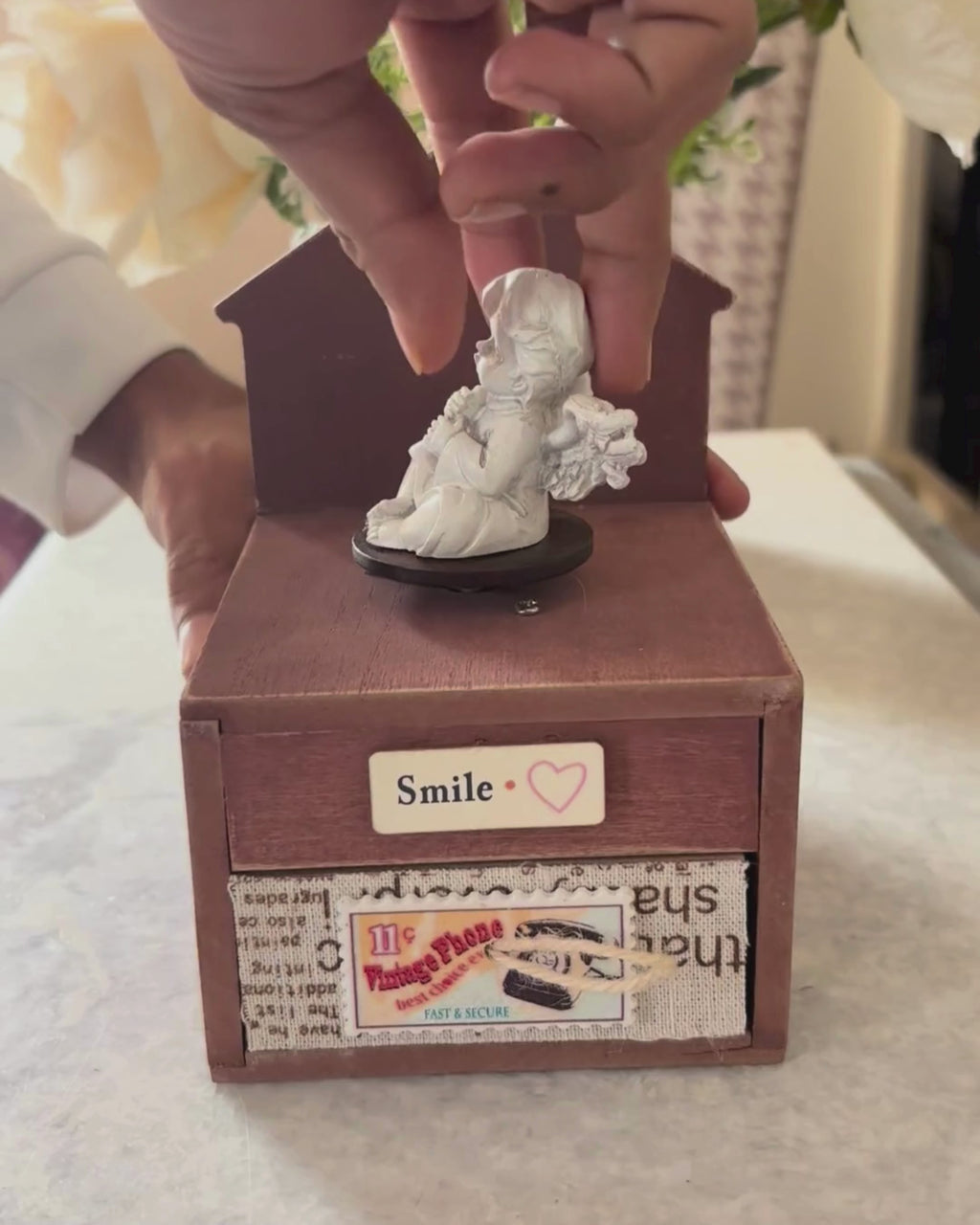 The top of this adorable musical box features an adorable cherub figurine. Revolve the top and enjoy soothing symphonies. Perfect storage space for your accessories. The musical box makes a perfect fit to your side table, living room, bathroom or any corner table in the house. It can also be an apt and charming gift for your beloved. (No Batteries Required)