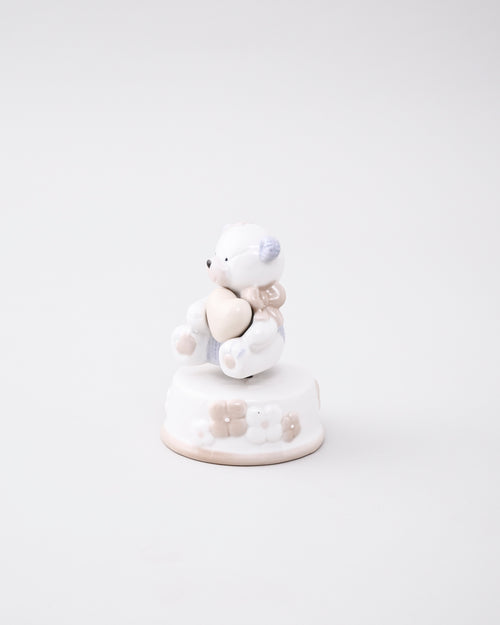 A charming ceramic music box featuring an adorable teddy bear holding a heart. With soft pastel tones and a delicate floral base, this piece brings warmth and love to any space. Perfect as a romantic gift or nursery decor, it plays soothing melodies that fill the room with calm and sweetness.