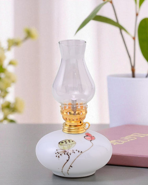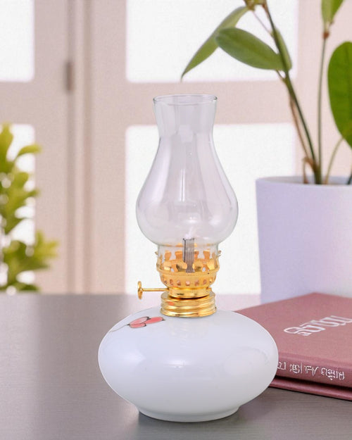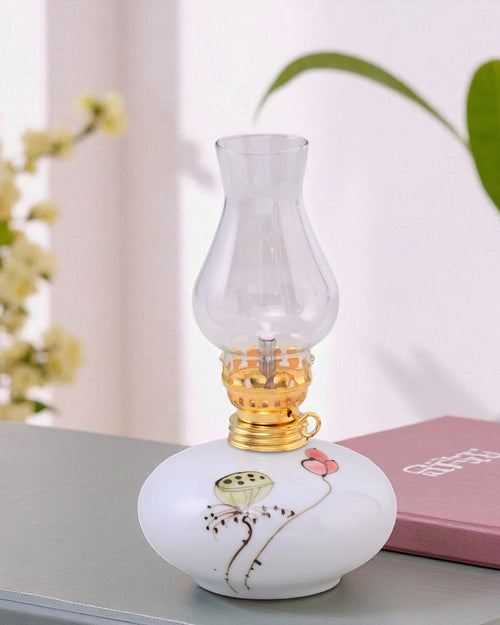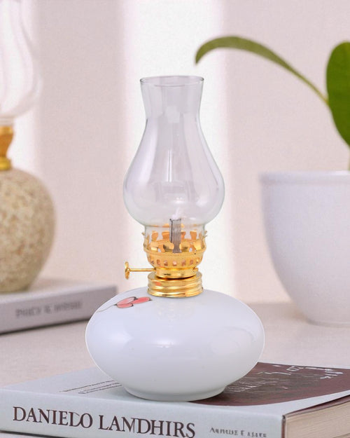 Bring the warmth of tradition into your home with the Heritage Glow Oil Lamp. Crafted with a glossy ceramic base, gold-finish burner, and a clear glass chimney, this timeless piece is perfect for adding a vintage touch to your décor. Ideal for festivals, meditation corners, cafes, or as a collector’s item.