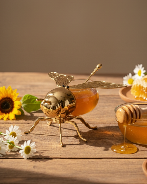 Add a touch of sophistication to the dining table with our exquisite HoneyBee Honey Pot! With its unique bee body shape and intricate details, this honey pot is a true conversation starter. Made from premium materials, it's a functional and decorative piece that will elevate your honey-drizzling experience.