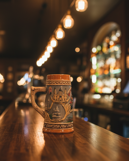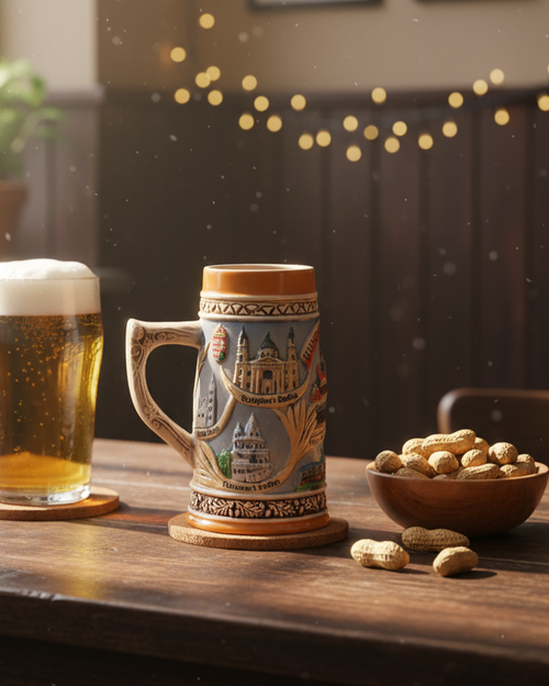 German Steins are ornamental beer mugs that are decorated in a nostalgic manner, depicting intricately carved illustrations on the surface. These hand-painted mugs originated in Germany and have now become collector's items. Enjoy your favourite brew in this traditional stein beer mug.