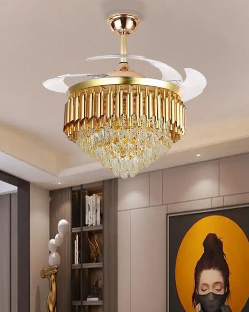 Imperial Glow Retractable Ceiling Fan + Chandelier Light (with Remote Control)