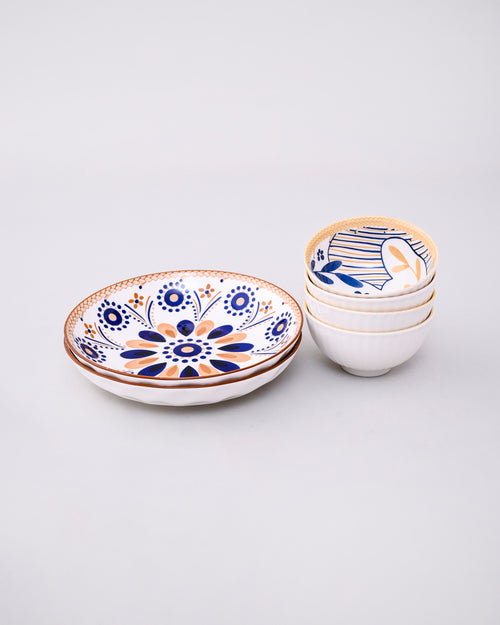 Indigo Artisan Katori & Pasta Bowl - Set Of 6