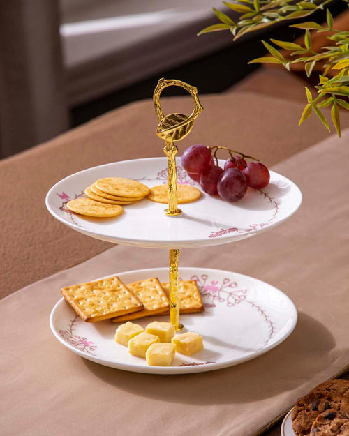 Use these dainty cake stands to serve your favorite desserts and hors-d'oeuvres. Our 2-tier cake stand adds a touch of elegance to any occasion, from an elegant dinner to a casual gathering. Perfect for desserts, pastries, and finger foods. This classic accessory gives your tabletop the ideal presentation at your next party.