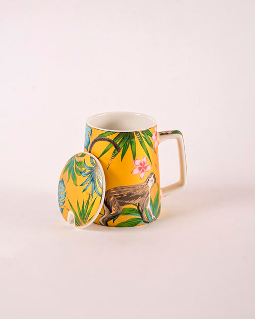 Made from sturdy porcelain, the Jungle Safari Coffee Mug is the perfect addition to your morning routine. The intricate design features lush green foliage and exotic animals, transporting you to a tropical paradise. With its 12 oz capacity, it's the ideal size for your favorite coffee or tea.