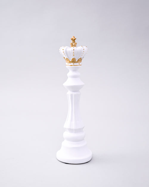 Add a touch of regal charm to your space with this Royal King Tabletop Décor. Designed in the shape of a chess king, this elegant white and gold piece reflects power, grace, and sophistication. Its sleek curves and glossy finish make it a perfect statement accent for coffee tables, consoles, or office desks.