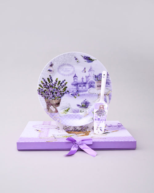 Celebrate sweetness in style with our Lavender Bliss Cake Plate Set. Featuring charming lavender blooms and scenic countryside artwork in soothing pastel tones, this elegant plate adds a touch of freshness to every dessert moment.