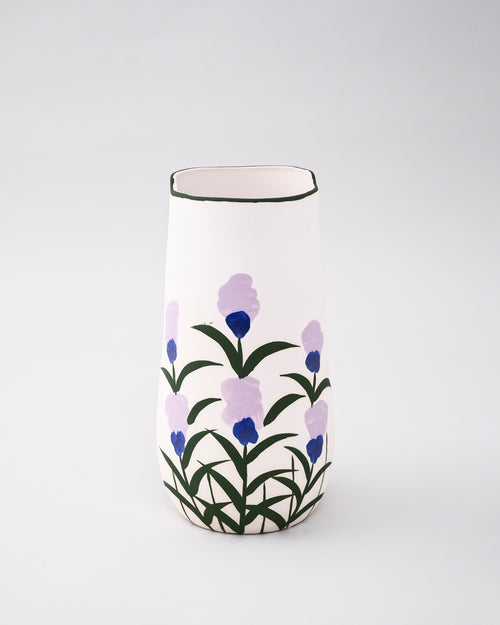 Bring natural elegance to your space with the Lavender Bloom Hand-Painted Flower Vase. Featuring soft lavender and royal blue floral motifs with lush green leaves, this ceramic vase adds a serene and modern touch to your home décor. Perfect for displaying fresh blooms or as a standalone art piece, it embodies simplicity, artistry, and timeless charm.